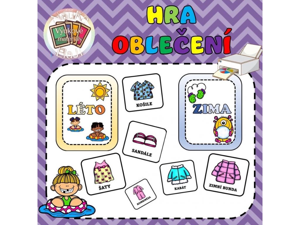 - Zbylé karty s oblečením dětem rozdáme. Karty obsahují zimní, tak i letní oblečení.