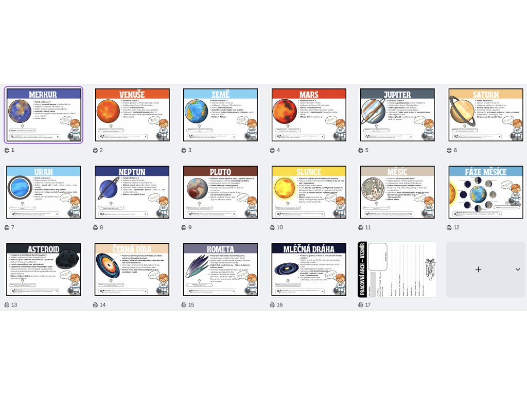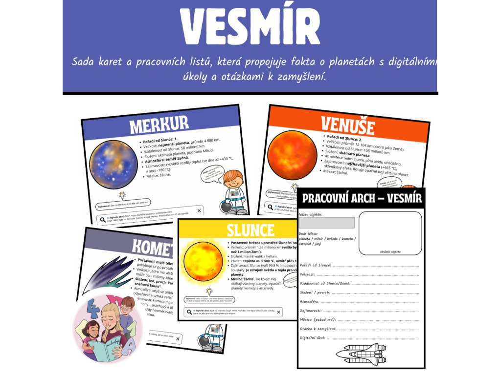 - Shrnuje → po vyplnění má kompletní zápis k jednotlivým planetám i vesmírným jevům